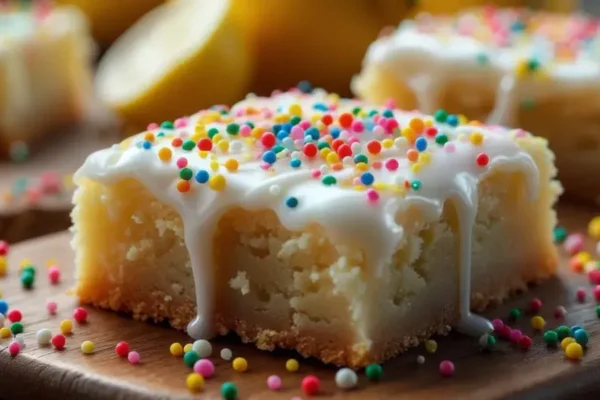 Descubra como preparar barras de biscoito de ricota italiana com limão, glacê e sprinkles. Uma receita deliciosa e…